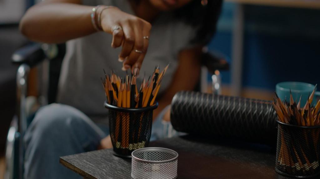Plane 60 bis 80 Zentimeter als freien Korridor vor klappbaren oder ausziehbaren Elementen. So bleibt der Alltag frustfrei, auch wenn zwei Personen gleichzeitig kochen, arbeiten oder Wäsche sortieren und niemand sich gegenseitig hemmt.